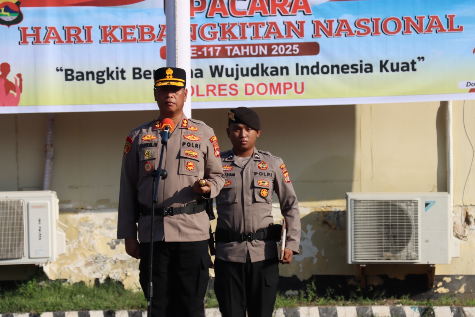 ntb.ceria.web.id/tag/kepolisian/”>Kepolisian Resor Dompu menggelar upacara memperingati Hari Kebangkitan Nasional (Harkitnas) ke-116 tahun 2025 yang berlangsung khidmat di halaman Mako Polres Dompu pada Senin pagi, 20 Mei 2025. Upacara tersebut dipimpin langsung oleh Kapolres Dompu AKBP Sodikin Fahrojin Nur, S.I.K., dan diikuti oleh Wakapolres, para Kabag, Kasat, Kasi, perwira staf, serta seluruh anggota dan ASN Polres Dompu.