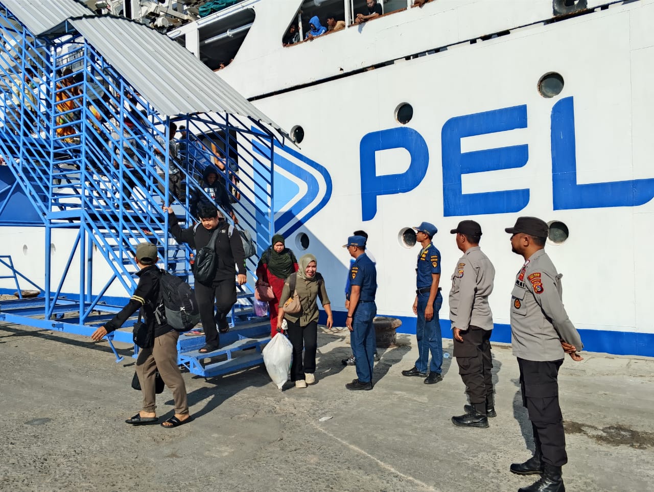 Selain memastikan keamanan, kehadiran petugas juga bertujuan untuk memberikan rasa aman dan nyaman bagi masyarakat pengguna jasa transportasi laut serta mengantisipasi potensi gangguan keamanan di area pelabuhan.