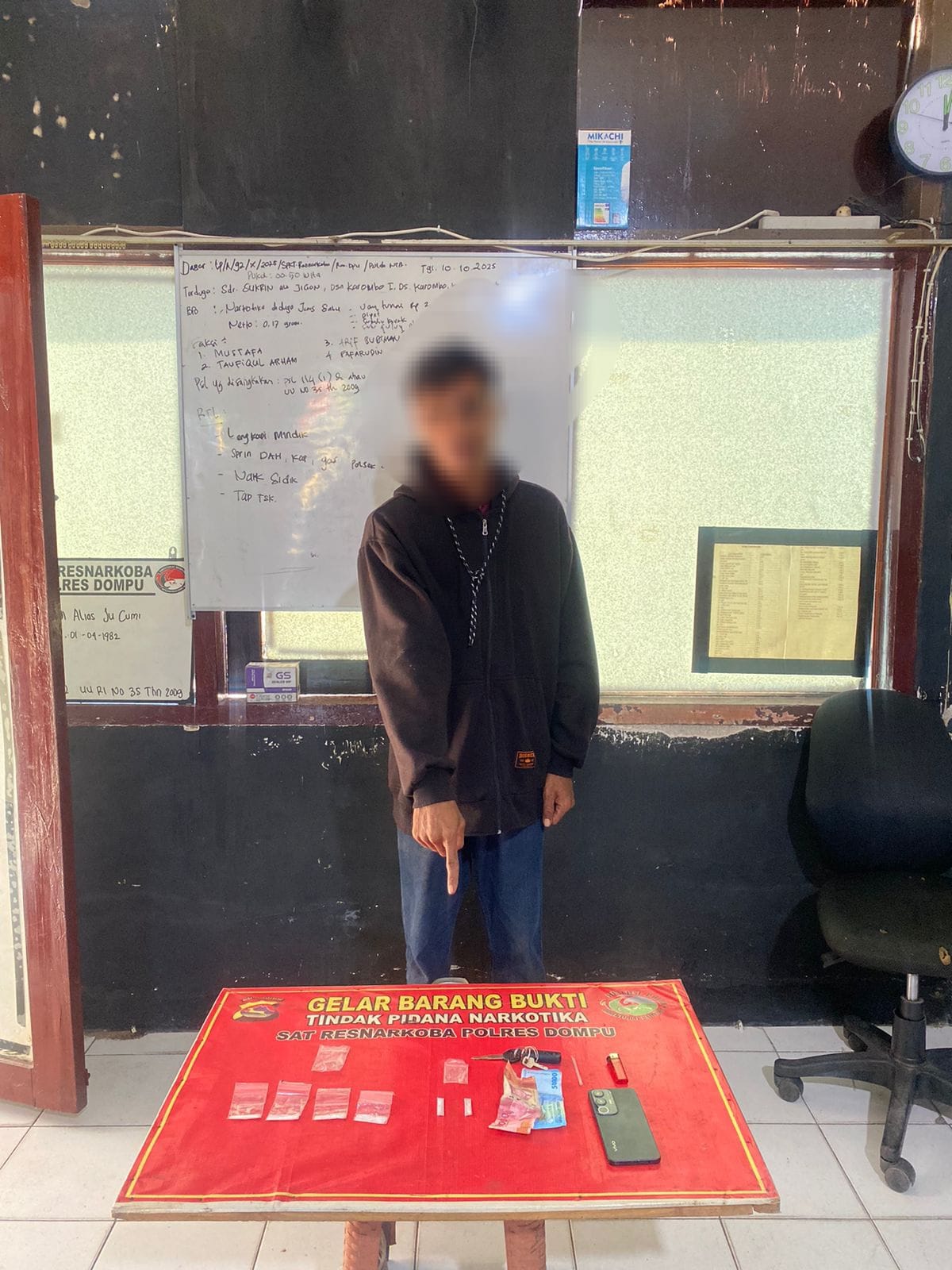 Penangkapan terjadi pada Senin (20/10/2025) pukul 02.00 Wita, dipimpin langsung oleh BRIPKA Abdul Hamid, S.H. bersama Tim Opsnal Satresnarkoba atas perintah Kasat Resnarkoba IPTU Rahmadun Siswadi, S.H. setelah menerima laporan masyarakat.