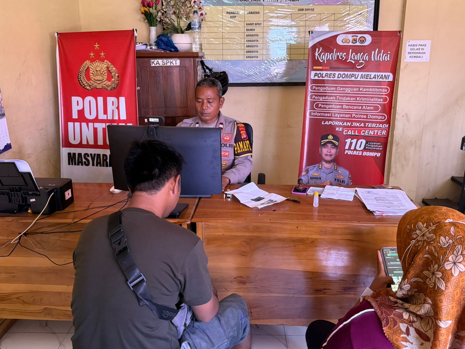 Dalam rangka meningkatkan kualitas pelayanan ntb.ceria.web.id/tag/kepolisian/”>kepolisian kepada masyarakat, Pamapta III Polres Dompu, AIPTU Mohammad Rifa’i, melaksanakan tugas pelayanan penerimaan laporan masyarakat di ruang Sentra Pelayanan Kepolisian (SPK) Polres Dompu, pada Kamis (30/10/2025).
