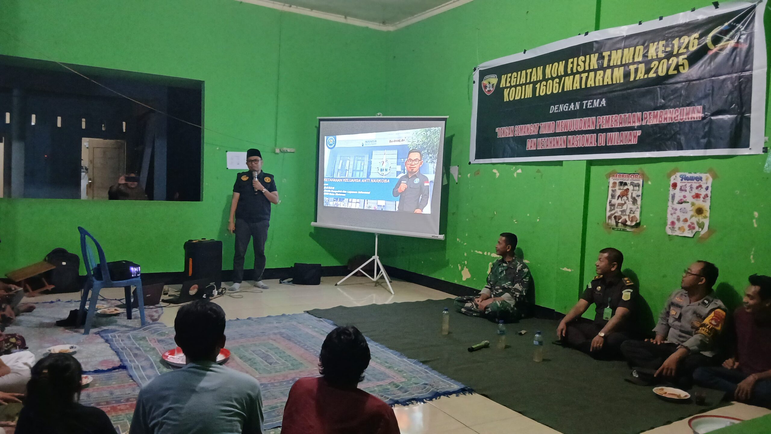 ntb.ceria.web.id/tag/lombok/”>Lombok Barat, NTB – Satgas TNI Manunggal Membangun Desa (TMMD) ke-126 Kodim 1606/Mataram terus menunjukkan komitmennya bukan hanya dalam pembangunan fisik, tetapi juga pembentukan karakter masyarakat. Melalui kegiatan non fisik, Satgas TMMD menggelar sosialisasi bahaya narkoba dan penyuluhan hukum di TK PAUD Al-Ahari, Dusun Murpeji, Desa Dasan Geria, lingsar/”>Kecamatan Lingsar, Sabtu malam (1/11/2025).