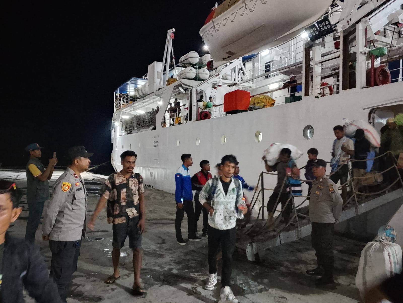 Kapolres Bima Kota AKBP Didik Putra Kuncoro, S.I.K., M.Si. melalui Kapolsek Kawasan Pelabuhan Laut Bima Iptu Kuntho T. Prakoso, S.H. menjelaskan bahwa kegiatan pengamanan dilakukan untuk memastikan proses naik turun penumpang berjalan aman, tertib, lancar/”>dan lancar.