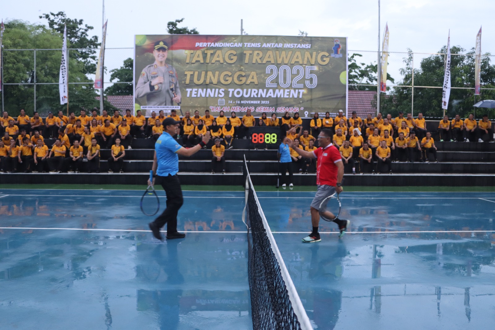 “Hari ini secara resmi dibuka Pertandingan Tenis Antar Instansi Tatag Trawang Tungga Tennis Tournament 2025. Peserta yang mendaftar sangat antusias, mencapai 60 peserta. Momentum ini menjadi ajang silaturahmi, sportivitas, dan kebersamaan antarinstansi di Kota Bima,” ujarnya.