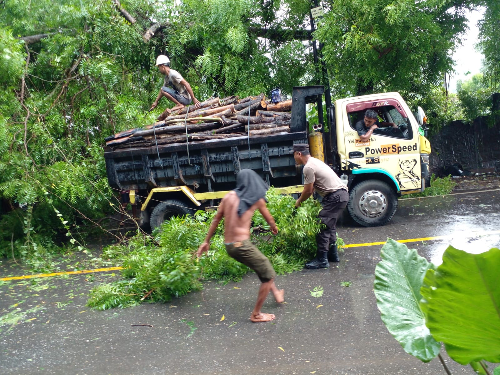 Polsek Rasanae Timur mengimbau masyarakat tetap berhati-hati, terutama pada musim hujan yang rawan menyebabkan pohon tumbang atau longsor di sejumlah titik rawan.