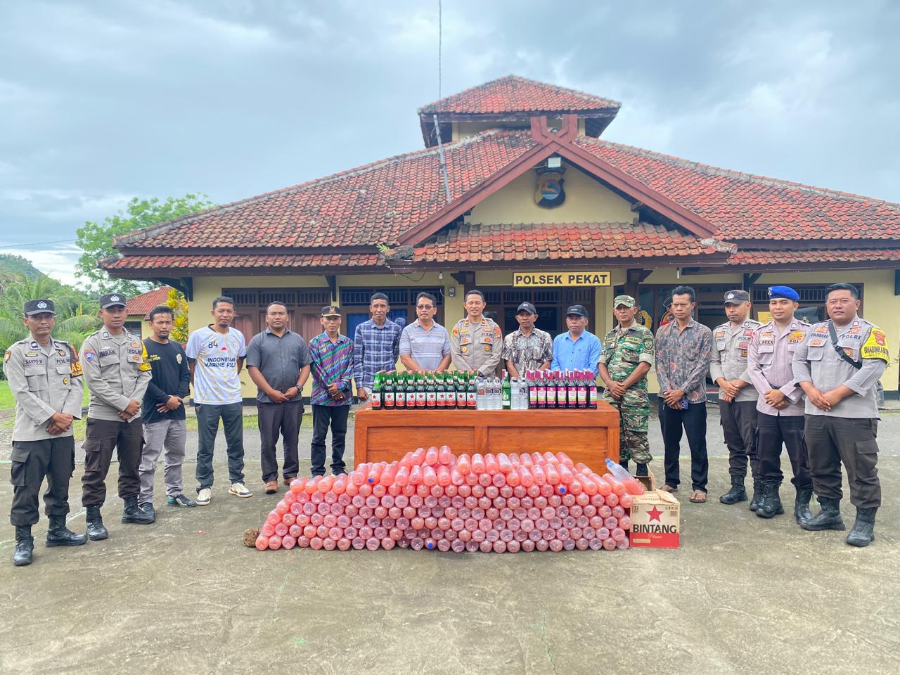 Kapolsek Pekat IPTU Agustamin, S.H. menegaskan bahwa pihaknya berkomitmen penuh memberantas peredaran minuman keras di wilayah Kecamatan Pekat.