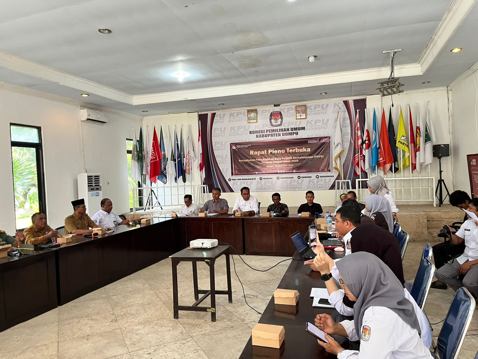 Dalam kegiatan tersebut, Polres Dompu hadir melalui Kasikum AKP Rusdi yang mewakili Kapolres Dompu. Turut hadir perwakilan Dandim 1614/Dompu, Ketua dan Komisioner KPU Dompu, perwakilan Bawaslu, Kepala Dukcapil, BPJS, BPS, serta peserta pleno lainnya dengan jumlah total 20 orang.