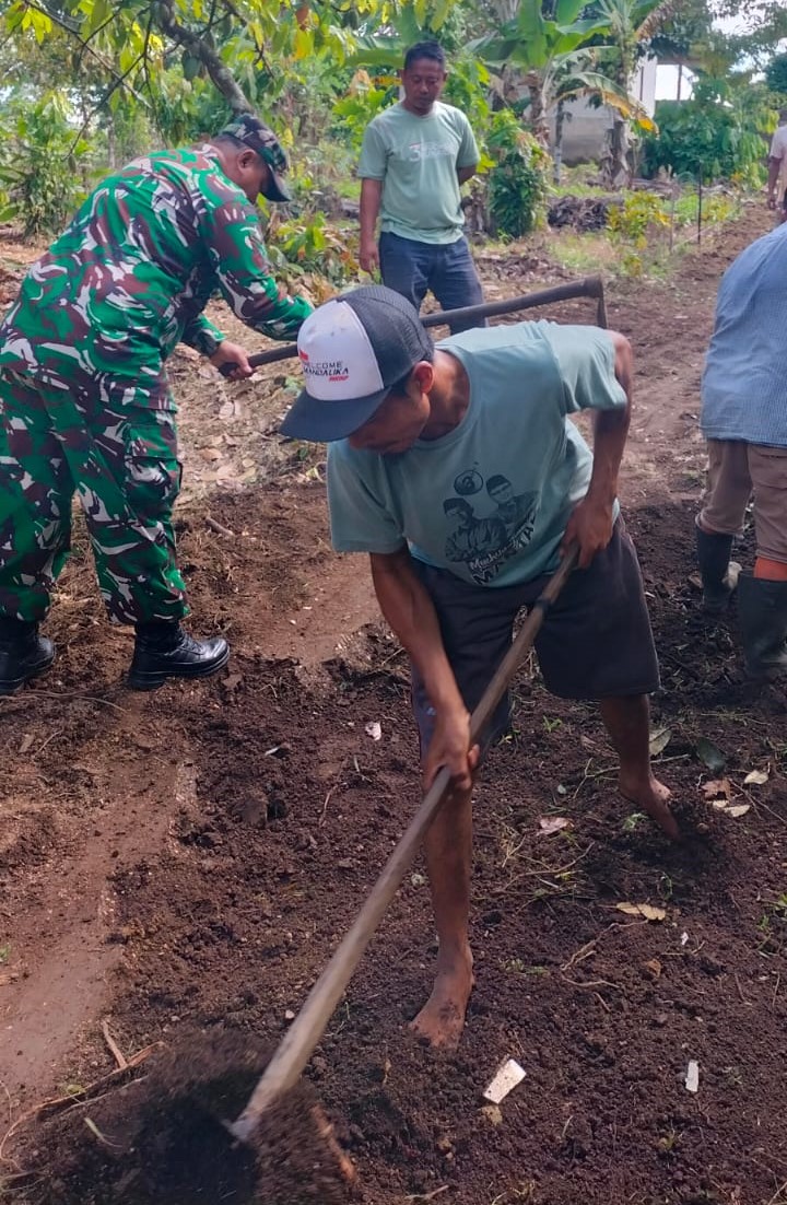 “Ini bukan sekadar memperbaiki jalan, tapi memperbaiki harapan warga agar kehidupan mereka semakin mudah dan aman,” ujar Serda Budianto sambil mencangkul tanah.