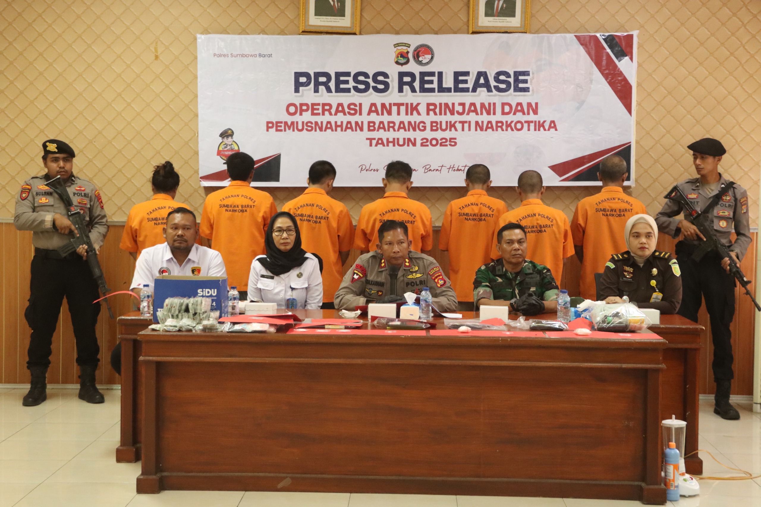 Sumbawa ntb.ceria.web.id/tag/barat/”>Barat – Kepolisian Resor (Polres) Sumbawa Barat menggelar Press Release Hasil Operasi Antik Rinjani dan Pemusnahan Barang Bukti Narkotika Tahun 2025, bertempat di Aula Endra Dharmalaksana Polres Sumbawa Barat, Selasa (15/12/2025).