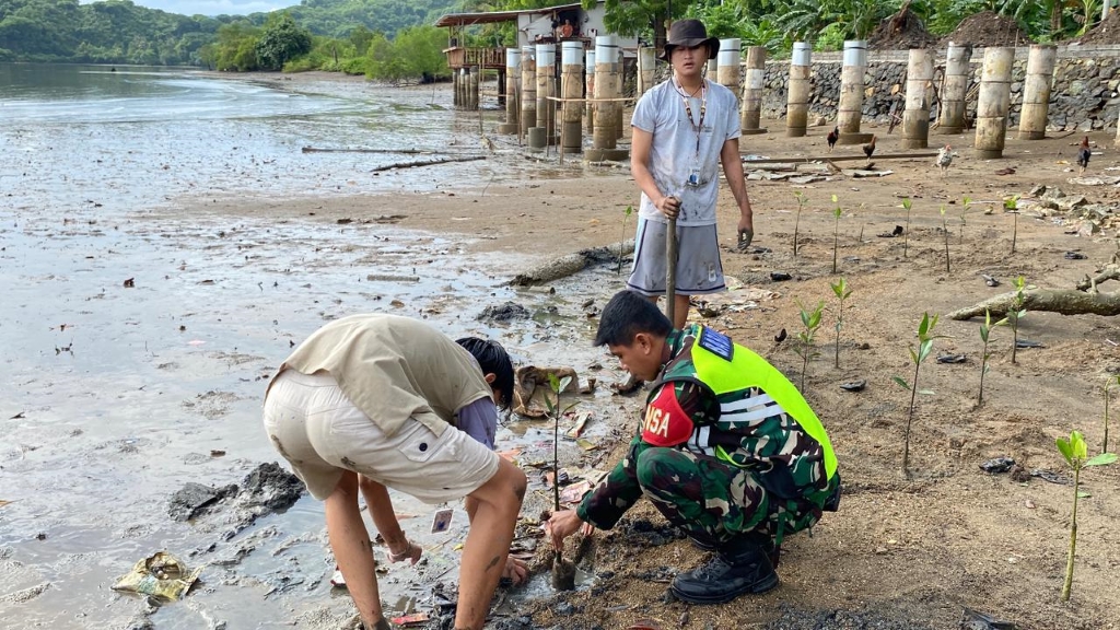 ntb.ceria.web.id/tag/lombok/”>Lombok Barat, NTB – Kepedulian terhadap kelestarian lingkungan terus diwujudkan melalui aksi nyata di lapangan. Bintara Pembina Desa (Babinsa) Sekotong Tengah, Komando Rayon Militer (Koramil) 1606-06/Sekotong, Serda Zaenal Abidin, bersama mahasiswa Kuliah Kerja Nyata (KKN) Universitas Mataram (Unram) melaksanakan penanaman pohon bakau di Dusun Aik Tangi, Desa Sekotong Tengah, Jum’at (9/1/2026).