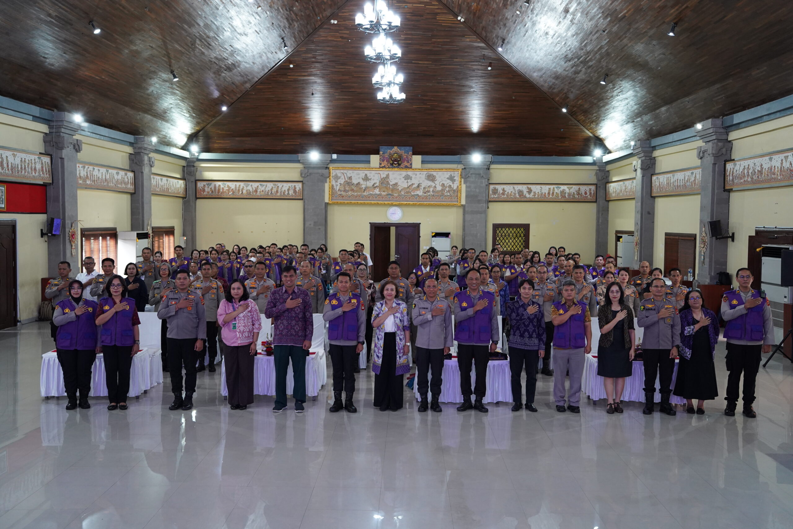 Pelaksanaan kegiatan ini sejalan dengan nilai-nilai kearifan lokal Bali yang menjunjung tinggi keseimbangan lahir dan batin. Konsep **Tri Hita Karana** menjadi landasan filosofis dalam membangun keharmonisan hubungan manusia dengan Tuhan, sesama manusia, serta alam lingkungan, yang relevan dalam upaya menjaga kesehatan mental dan kesejahteraan psikologis personel Polri.