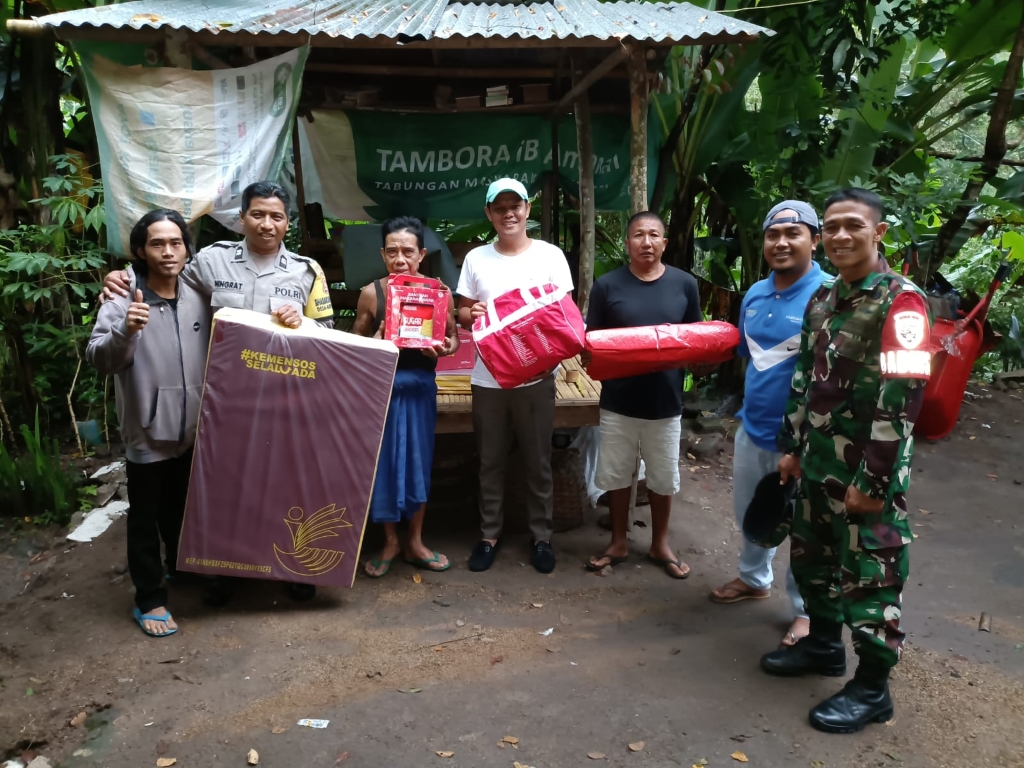 Bintara Pembina Desa (Babinsa) Batulayar Komando Rayon Militer (Koramil) 1606-07/Gunungsari, Sertu Deddy Heriawan, melaksanakan monitoring penyerahan bantuan kepada Asikin (25), warga Dusun Orong yang rumahnya terdampak longsor akibat hujan lebat pada Rabu dini hari.
