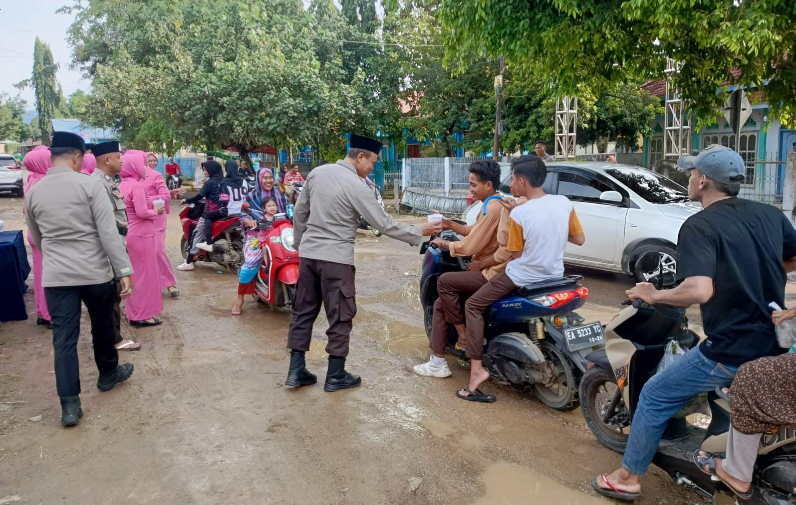 Aksi humanis ini menjadi bagian dari upaya Polri mempererat silaturahmi sekaligus membantu warga yang masih dalam perjalanan saat waktu berbuka puasa tiba.