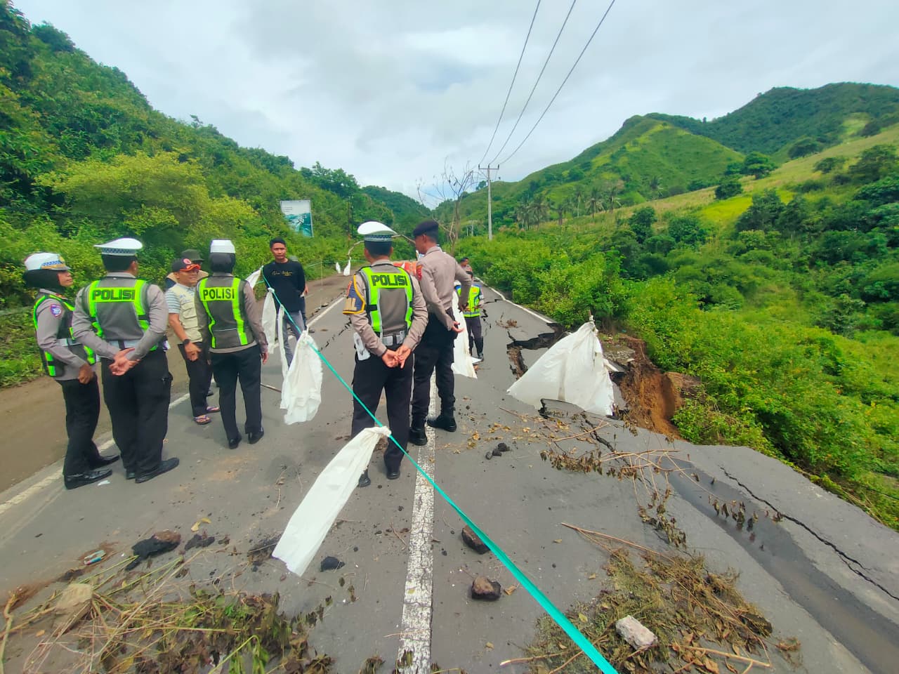 Polres Loteng Imbau Pengguna Jalan Waspadai Jalan Amblas di Montong Ajan. ‎ ‎