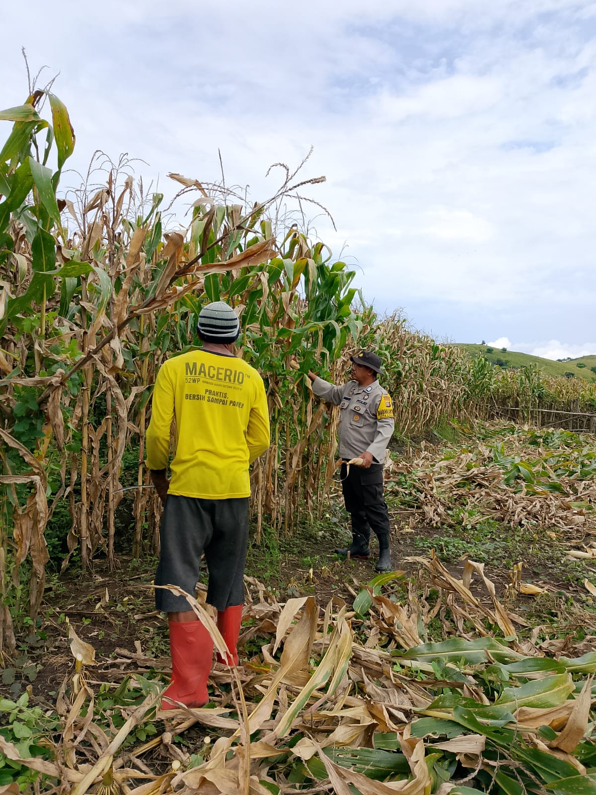 Kegiatan tersebut dilaksanakan oleh Bhabinkamtibmas Desa Kwangko Bripka Sahri Ramadhan dengan melakukan pemantauan langsung terhadap lahan jagung milik petani bernama Mangetan (58), yang memiliki lahan seluas sekitar 1 hektare dari total lahan 2 hektare yang dikelola.