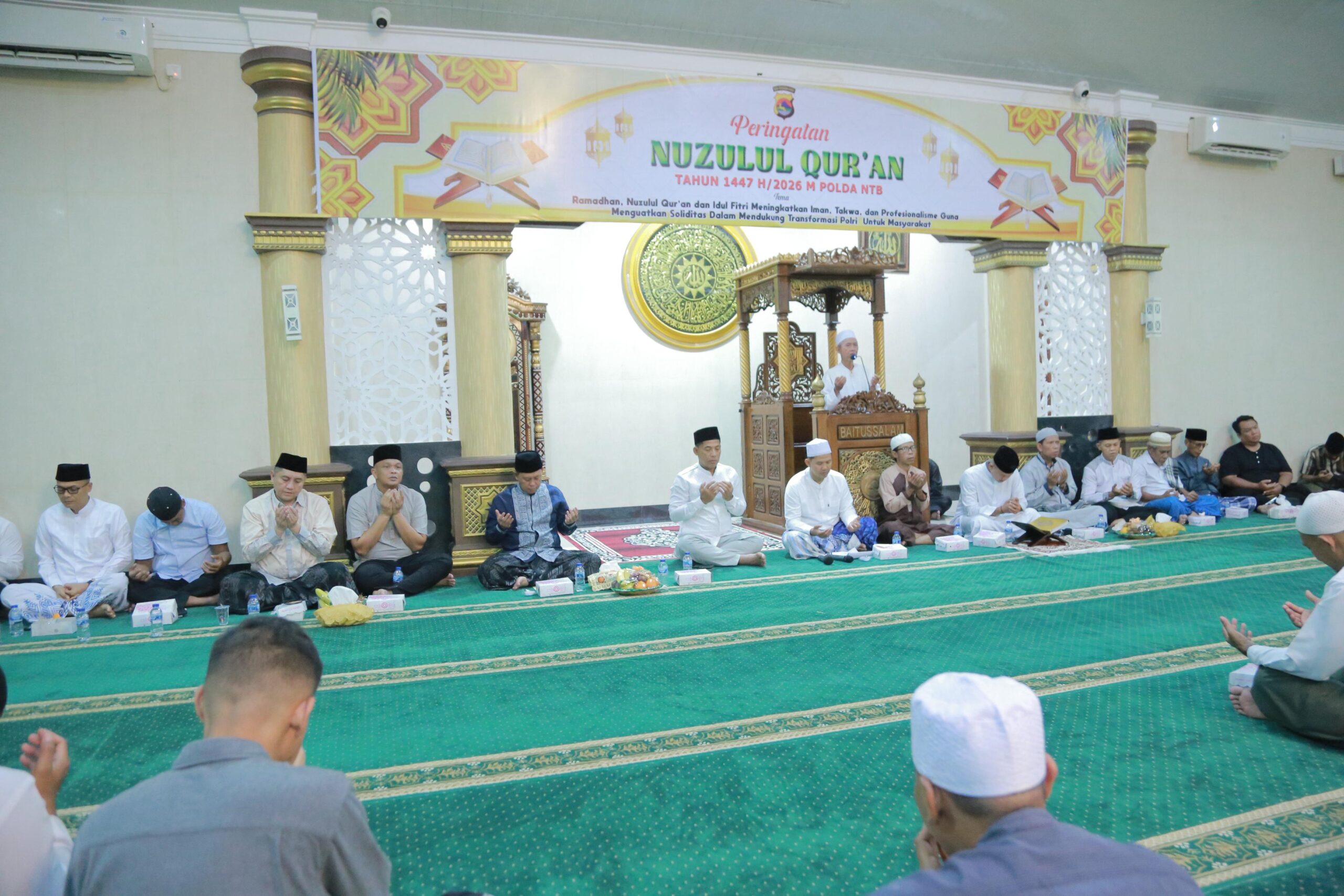 Peringatan Nuzulul Qur’an menjadi momentum spiritual bagi keluarga besar Polda NTB untuk meningkatkan keimanan serta memperkuat nilai-nilai moral dalam kehidupan sehari-hari.
