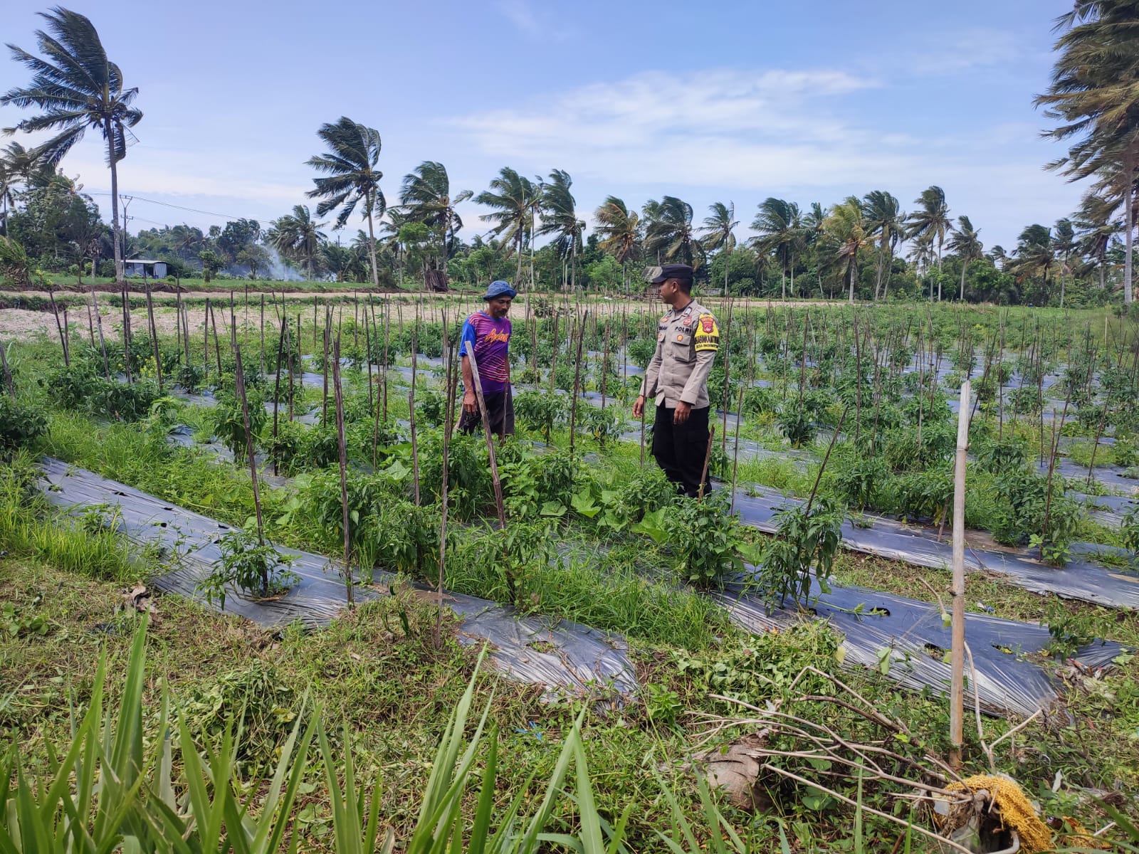 Dalam kegiatan itu, Bripka Slamet Suprihono melakukan pengecekan lahan pertanian milik warga bernama Idham yang ditanami tanaman cabai sebagai salah satu komoditas hortikultura yang memiliki nilai ekonomi bagi masyarakat.