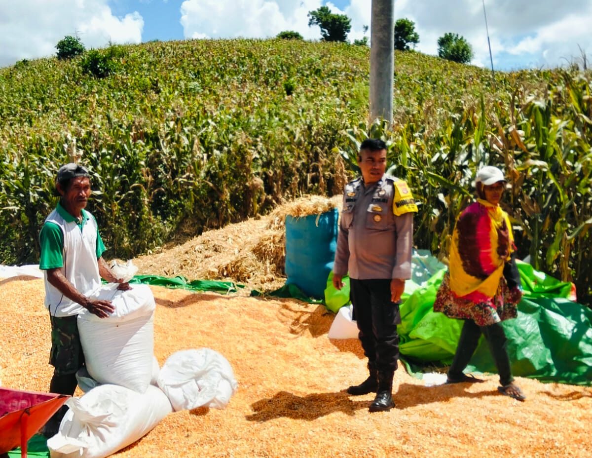 Dalam rangka mendukung Program ntb.ceria.web.id/tag/ketahanan/”>Ketahanan Pangan Nasional menuju Indonesia Emas 2045, Bhabinkamtibmas Desa Matua Polsek Woja, AIPTU Wawan Dermawan, melaksanakan kegiatan pemantauan sekaligus membantu proses penjemuran dan pengemasan hasil panen jagung milik warga binaan, Kamis (19/3/2026) pukul 11.55 Wita hingga selesai.