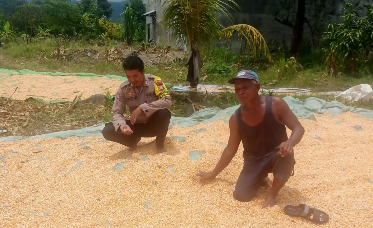 Dalam upaya mendukung Program ntb.ceria.web.id/tag/ketahanan/”>Ketahanan Pangan Nasional menuju Indonesia Emas 2045, Bhabinkamtibmas Desa Rasabou Polsek Hu’u, AIPDA Fathurrahman, melaksanakan kegiatan pemantauan hasil panen jagung milik warga binaan yang sedang dijemur, Kamis (19/3/2026) sekitar pukul 11.40 Wita hingga selesai.