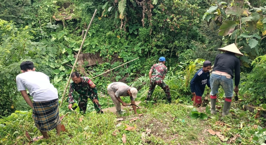 ntb.ceria.web.id/tag/lombok/”>Lombok Utara, NTB – Semangat kebersamaan terasa kuat di Dusun Gitak Demung, Desa Genggelang, Kecamatan Gangga, Kabupaten Lombok Utara. Di tengah keterbatasan yang dirasakan sejak putusnya akses jembatan pada 20 Januari 2026, anggota Komando Rayon Militer (Koramil) 1606-10/Gangga bersama warga turun tangan bergotong royong membersihkan dan menyiapkan lokasi guna akan dilaksanakannya pembangunan jembatan gantung bantuan pemerintah pusat, Kamis (26/3/2026).