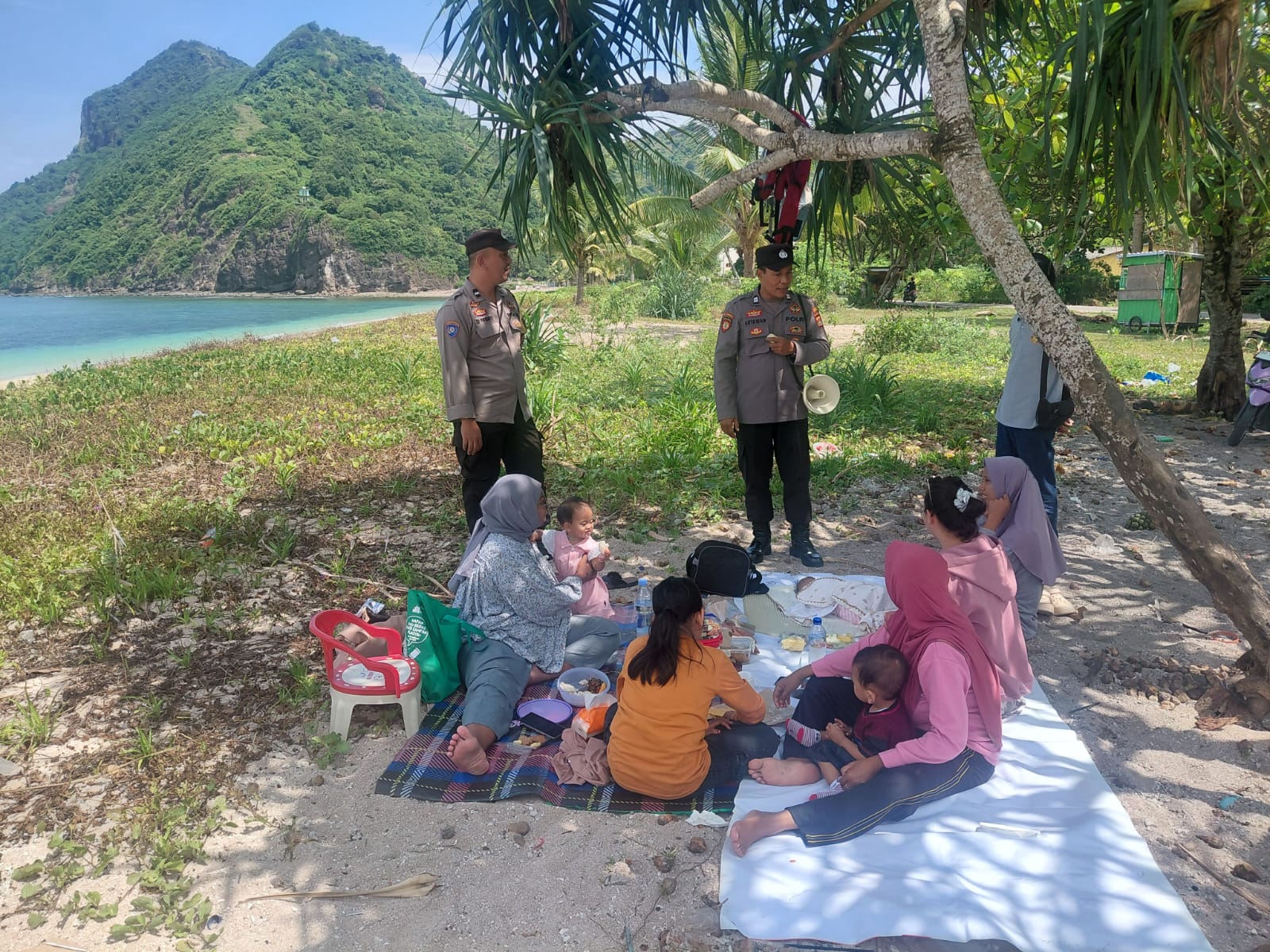 Dalam kegiatan tersebut, personel kepolisian menyasar area wisata pantai yang ramai dikunjungi masyarakat. Selain melakukan pemantauan situasi, petugas juga memberikan imbauan secara langsung kepada para pengunjung agar tetap waspada selama beraktivitas.