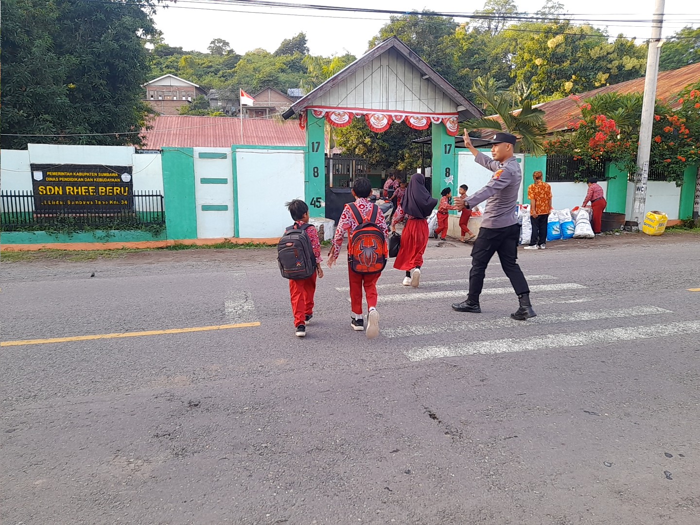 Kapolres Sumbawa AKBP Marieta Dwi Ardhini, S.H.,S.I.K, melalui Kapolsek Rhee Ipda Romy Octovian Munir menegaskan bahwa kehadiran anggota Polri di tengah masyarakat pada jam keberangkatan sekolah dan kantor adalah wujud nyata pelayanan prima.