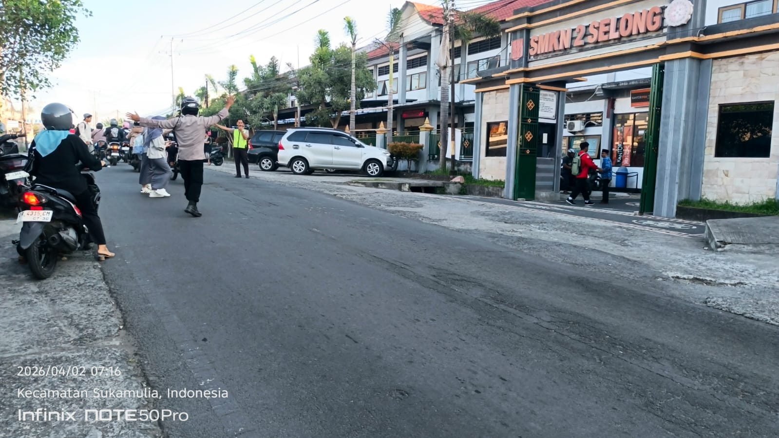 ntb.ceria.web.id/tag/lombok/”>Lombok Timur – Personel Polsek Sukamulia melaksanakan kegiatan pengaturan lalu lintas sebagai bentuk pelayanan kepada masyarakat di depan SMKN 2 Selong, Desa Sukamulia Timur, Kecamatan Sukamulia, Kabupaten Lombok Timur, Kamis (2/4/2026) pagi.