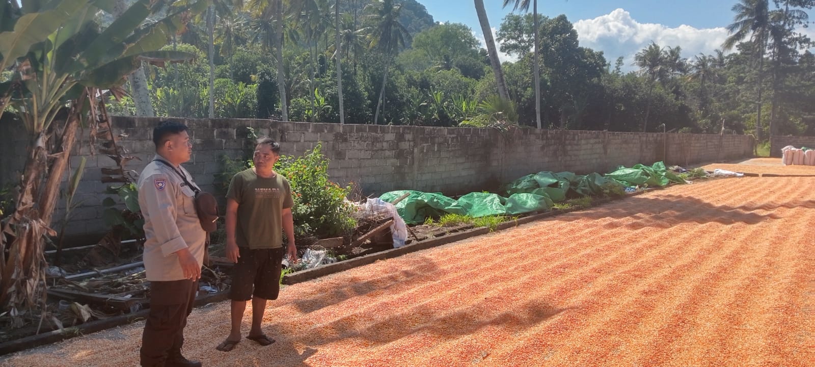 Dalam rangka mendukung Program ntb.ceria.web.id/tag/ketahanan/”>Ketahanan Pangan Nasional menuju Indonesia Emas 2045, Bhabinkamtibmas Desa Pekat Polsek Pekat, Brigadir Syamsuri Akhmadi, melaksanakan kegiatan pemantauan terhadap aktivitas masyarakat yang sedang melakukan penjemuran hasil panen jagung di Dusun Latonda I Barat, Desa Pekat, Kecamatan Pekat, Kabupaten Dompu, Minggu (5/4/2026) sekitar pukul 11.30 WITA.