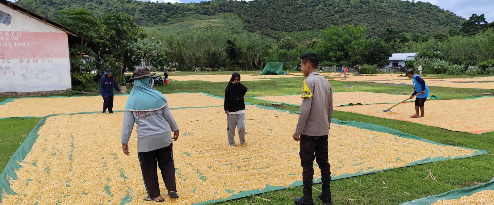 Dalam rangka mendukung program ntb.ceria.web.id/tag/ketahanan/”>ketahanan pangan nasional, Polsek Kempo melalui Bhabinkamtibmas Desa Songgajah terus aktif melakukan pemantauan terhadap aktivitas pertanian masyarakat. Salah satunya dengan melaksanakan pemantauan proses penjemuran jagung milik warga binaan di Dusun Mada Nggajah, Desa Songgajah, Kecamatan Kempo, Kabupaten Dompu, Kamis (9/4/2026) sekitar pukul 11.30 WITA.