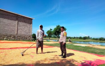 Dalam rangka mendukung Program ntb.ceria.web.id/tag/ketahanan/”>Ketahanan Pangan Nasional menuju Indonesia Emas 2045, Bhabinkamtibmas Desa Mumbu Polsek Woja, BRIGADIR Akbar, melaksanakan kegiatan pemantauan lahan jagung milik warga binaannya yang sedang memasuki masa panen.