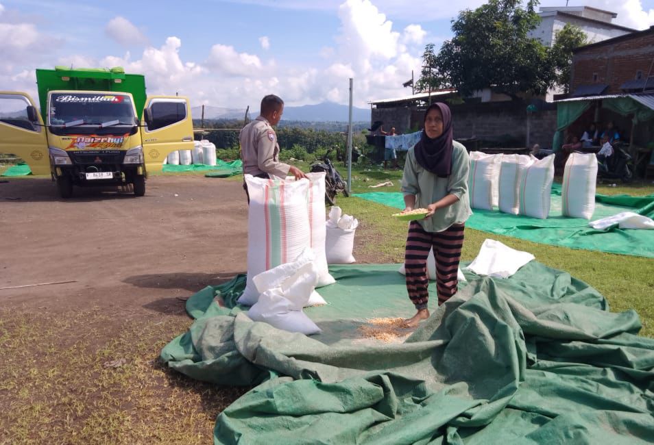 Dalam rangka mendukung program ntb.ceria.web.id/tag/ketahanan/”>ketahanan pangan nasional, Bhabinkamtibmas Desa Katua Polsek Dompu melaksanakan kegiatan pemantauan hasil panen jagung milik warga binaan yang sedang dijemur dan sebagian telah di kemas untuk di salurkan ke gudang.