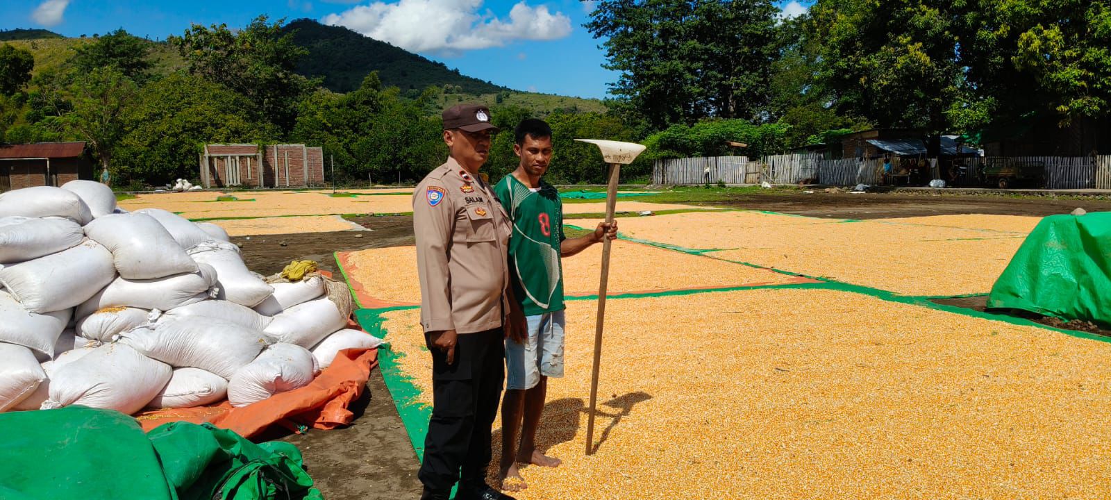 Dalam rangka mendukung Program ntb.ceria.web.id/tag/ketahanan/”>Ketahanan Pangan Nasional menuju Indonesia Emas 2045, Polsek Kilo melalui Bhabinkamtibmas Desa Kramat melaksanakan kegiatan pemantauan terhadap warga binaan yang tengah melakukan penjemuran hasil panen jagung.