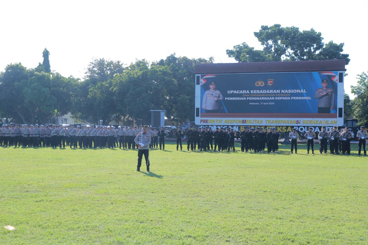 ntb.ceria.web.id/tag/mataram/”>Mataram, NTB – Kapolda NTB Edy Murbowo memimpin upacara peringatan Hari Kesadaran Nasional yang dirangkaikan dengan penyerahan piagam penghargaan kepada personel berprestasi di lingkungan Polda NTB, Jumat (17/04/2026).