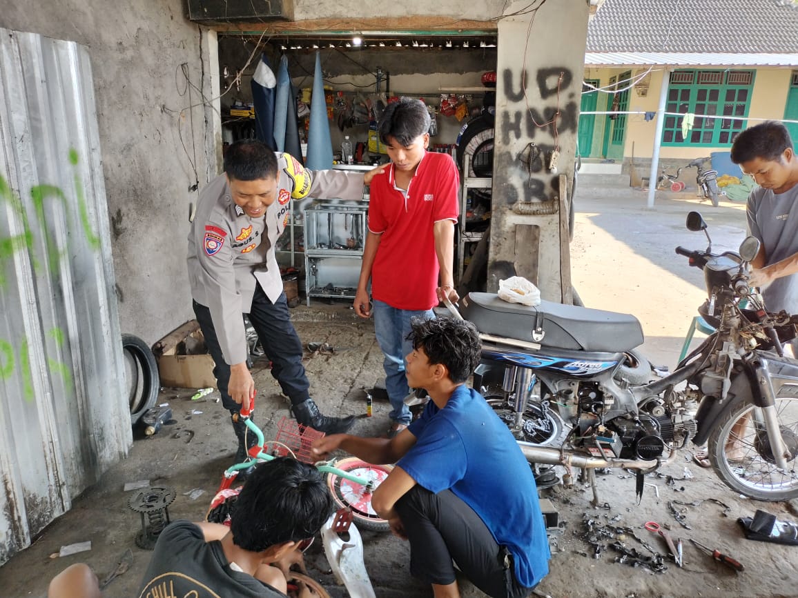 Dalam pelaksanaannya, BRIPKA Agus Salim menyambangi sejumlah pemuda yang sedang memperbaiki sepeda motor di bengkel milik Saudara Suhaedi. Pada kesempatan tersebut, Bhabinkamtibmas menjalin komunikasi secara humanis sekaligus memberikan berbagai pesan kamtibmas.