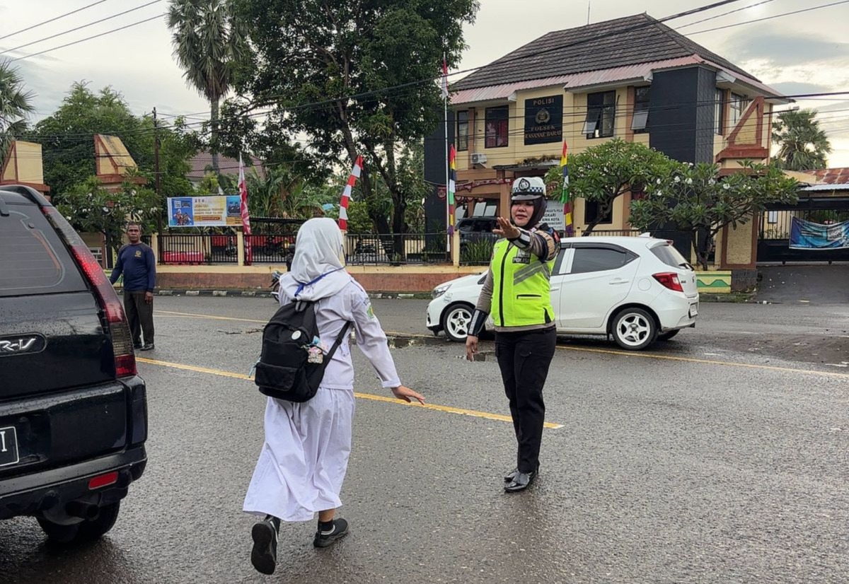 “Personel Polsek Rasanae Barat tidak hanya membantu pelajar menyeberang jalan, tetapi juga memberikan imbauan kepada para pengendara terkait pentingnya keselamatan berlalu lintas,” jelasnya.